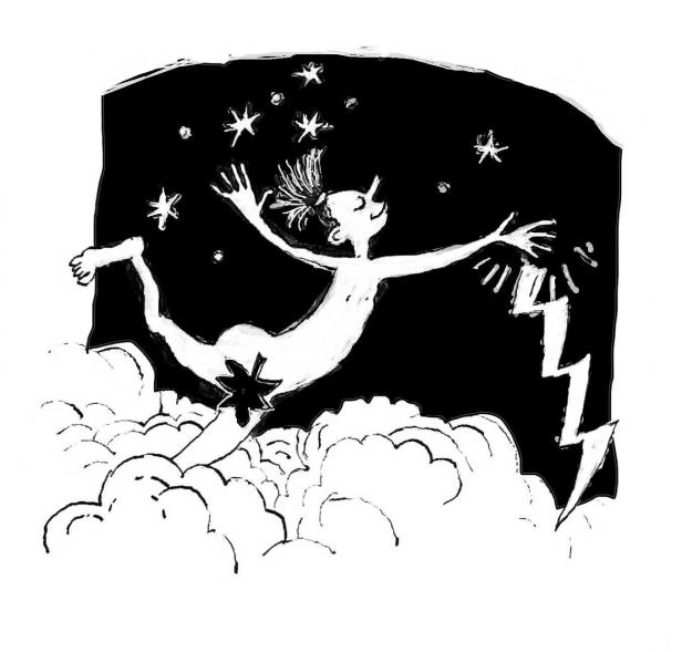 Decorillustraties bij een dansvoorstelling van dansschool Base4Dance, in de Deventer Schouwburg.