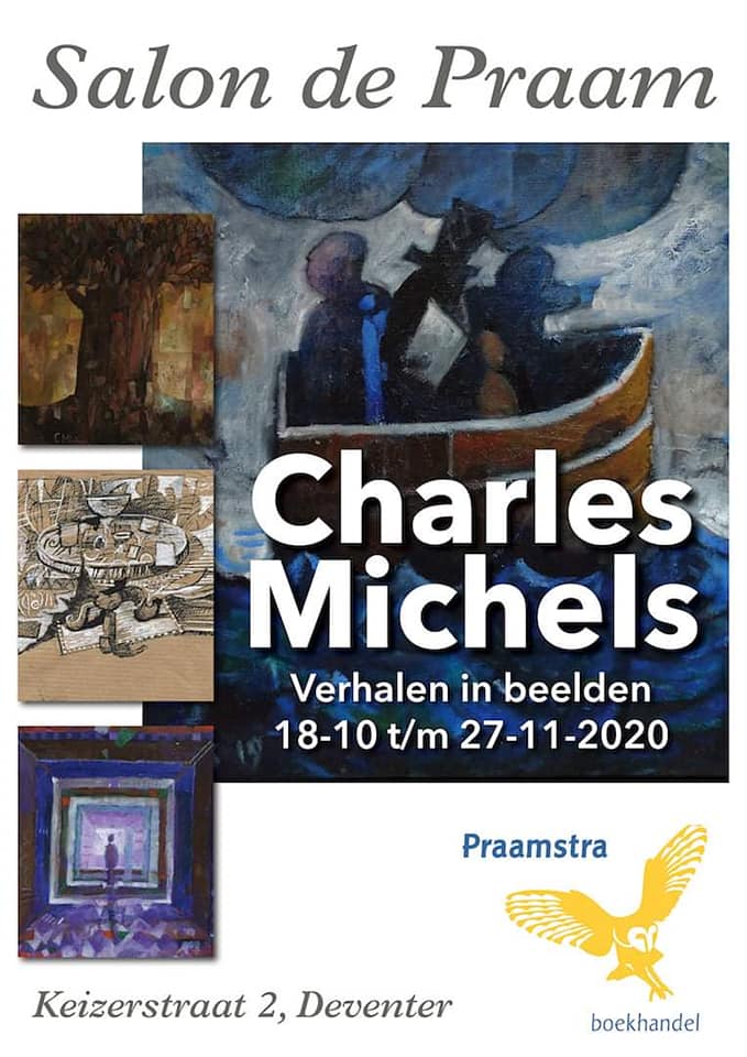 Salon de Praam in Deventer exposeert Charles Michels: Verhalen in beeldenVanaf zaterdag 18 oktober tot en met vrijdag 27 november is het bijzondere werk van de Deventer kunstenaar Charles Michels te bewonderen in de galerie van boekhandel Praamstra. Over zijn werk, dat recentelijk onder invloed van de corona crisis tot stand kwam het volgende: “Mijn tekeningen en schilderijen hebben vaak een verhaal: soms een specifiek verhaal, maar vaak een algemene houding of situatie.In tekeningen en kleine schilderijen vond ik weer de rust, die weg was na de afkondiging van de lockdown. Opgesloten, had ik behoefte aan ruimte, zocht ik een nieuw evenwicht en voelde ik het gemis aan nieuwe ontmoetingen. Naast deze recente werken wat oudere die gaan over concentratie en het accepteren van doelloosheid, oftewel het accepteren van het leven zoals zich dat aandient.” De werken zijn te koop.